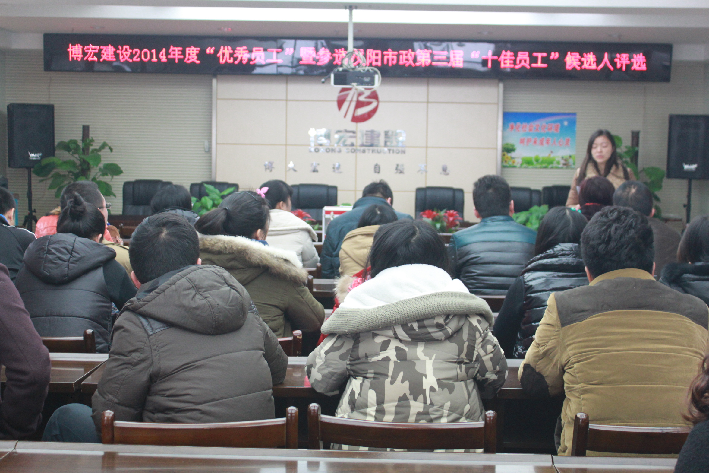 12月29日下午,武漢博宏建設(shè)有限公司在會議室舉行了2014年度“優(yōu)秀員工”暨參選漢陽市政第三屆“十佳員工”候選人評比活動,旨在弘揚(yáng)先進(jìn),樹立典型,營造積極向上、爭當(dāng)先進(jìn)的工作氛圍。博宏公司領(lǐng)導(dǎo)班子、各部室行政人員及各項(xiàng)目部成員參加了評選活動。