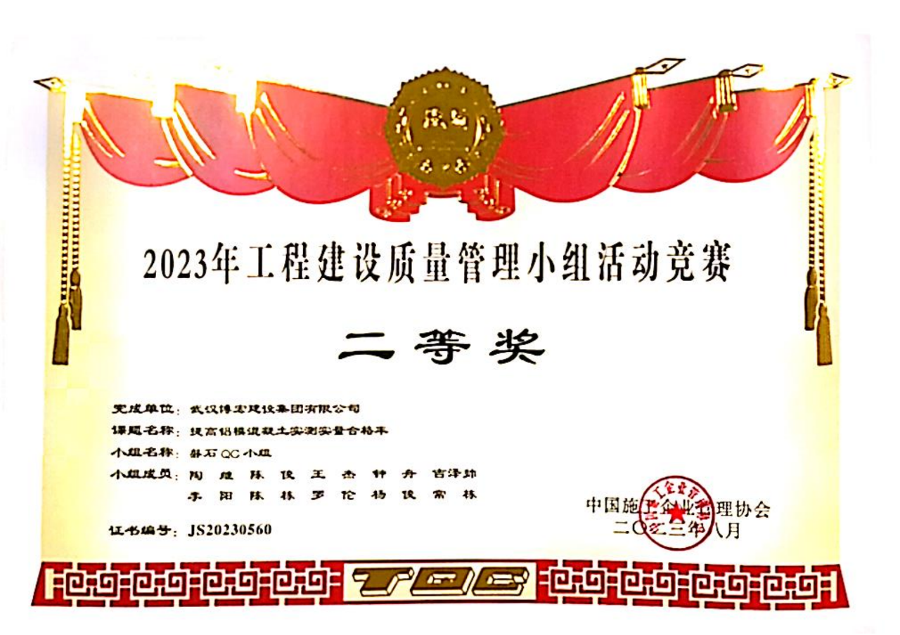 項(xiàng)目榮獲2023年上半年武漢市建筑施工安全標(biāo)準(zhǔn)化示范工地、國(guó)家級(jí)QC二等獎(jiǎng)、多次獲得流動(dòng)紅旗等多項(xiàng)榮譽(yù),以優(yōu)質(zhì)履約擦亮品牌底色,用守諾踐諾講好博宏故事,在匠心傾注中賦能美好生活!